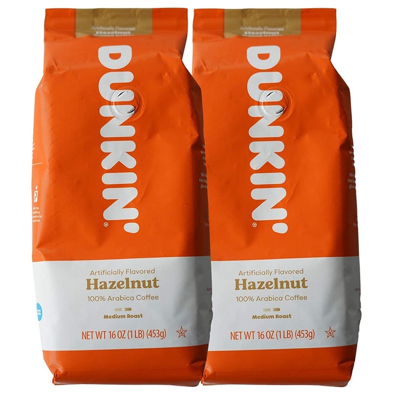 Dunkin' Donuts Ground Coffee 1 LB. Bag Multi Pack (Hazelnut, Two Pack)