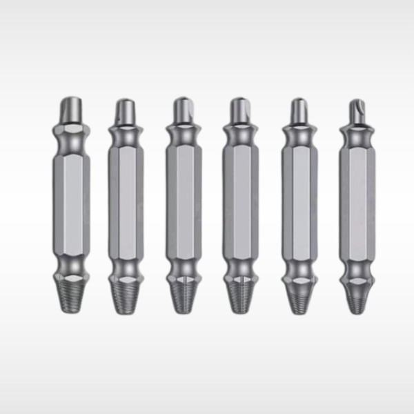- This 6pc Tool Kit Is Perfect For Removing Damaged Screws And Bolts. Featuring A Double Ended Design, One Side Will Create A Hole, While The Other Side Has Reverse Threads To Bit Into The Groove And Release The Stuck Bolt.