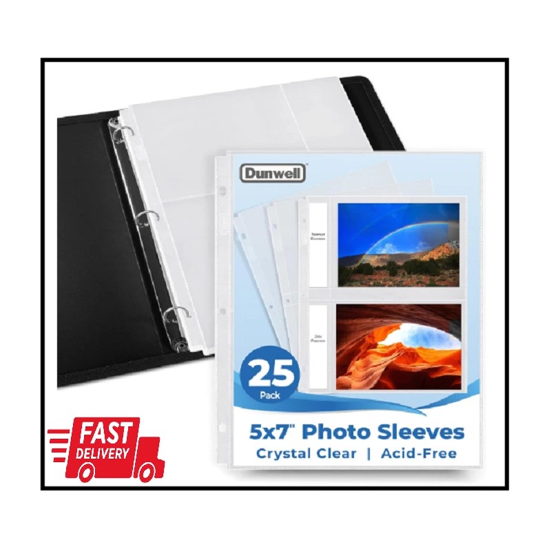 Dunwell 5x7 Photo Sleeves for 3-Ring Binder, (25 Pack) 5x7", Crystal Clear