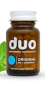 Nano-hydroxyapatite (nHa), a natural mineral in your teeth, is the dentist-backed fluoride alternative in Duo that remineralizes enamel, removes plaque, whitens, and repairs sensitivity