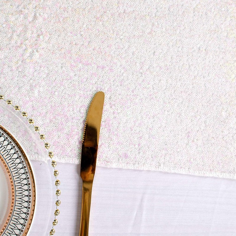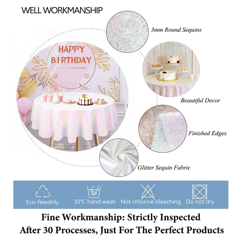 - ★ WHAT YOU GET :1PC Diameter is 60 Inch round tablecloth Iridescent White sequin tablecloth overlay birthday party decorations .