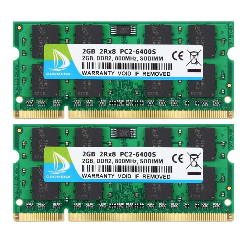 DUOMEIQI 4GB (2X 2GB) 2RX8 PC2-6300 PC2-6400 PC2-6400S DDR2 800MHz CL6 200 Pin 1.8v SODIMM Notebook RAM Non-ECC Unbuffered Laptop Memory Module