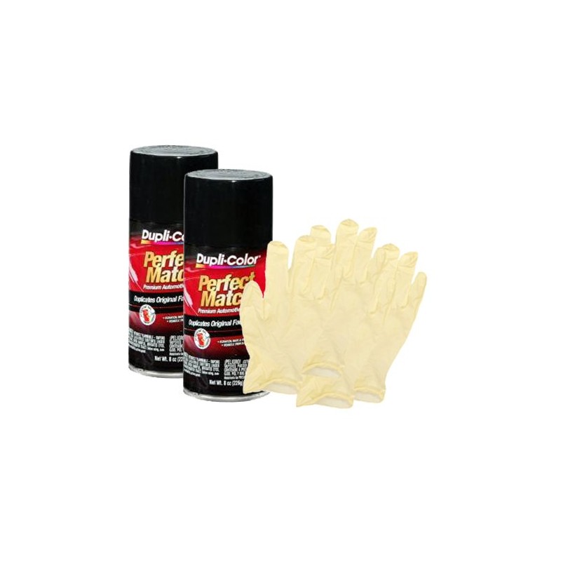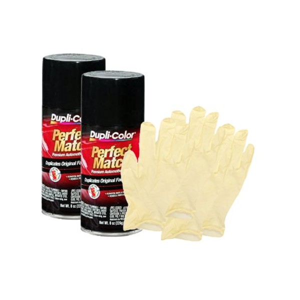Dupli-Color Universal Gloss Black Exact-Match Automotive Paint (8 oz) Bundle with Latex Gloves (6 Items)