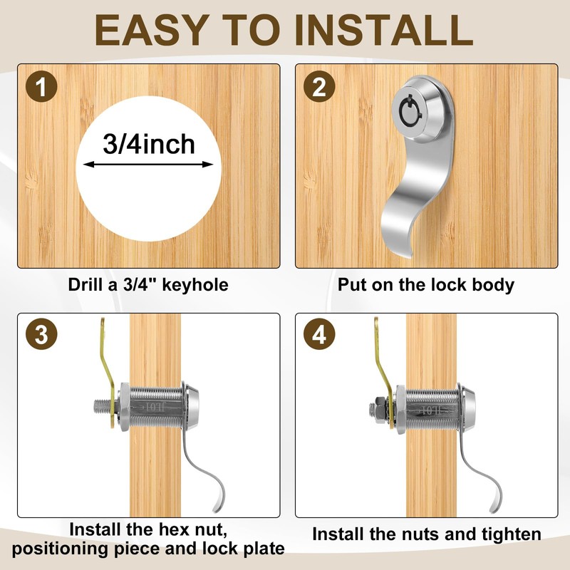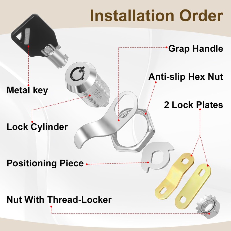 - Easy to Install: this drawer cam lock can be installed quickly and easily, usually installed on the cabinet door or panel; Once installed, turn 90 degrees to open, and the key can be removed in the unlocked position