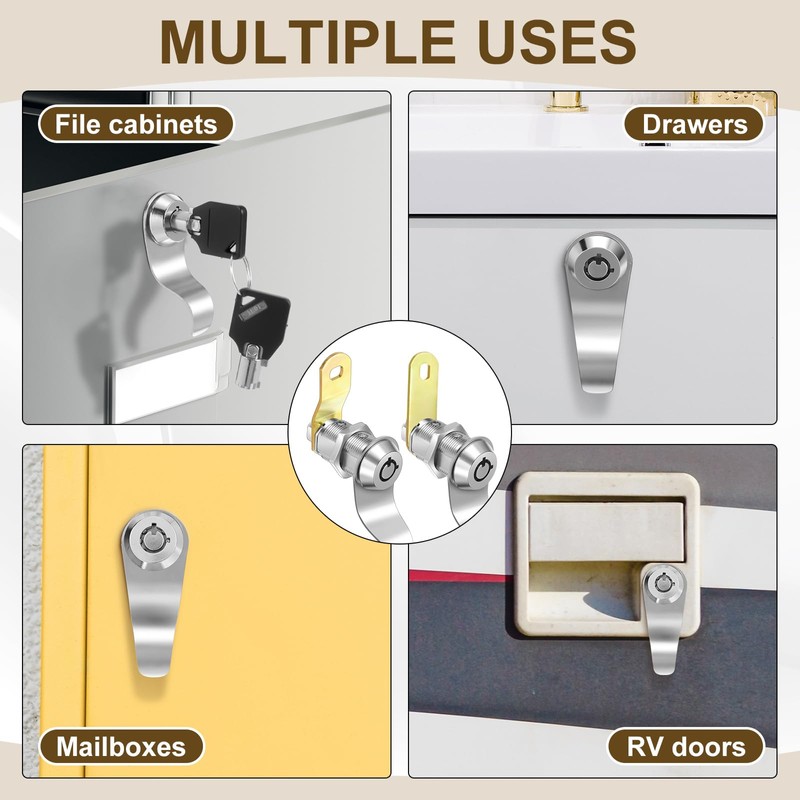 - Wide Applications: 1 1/8" RV locks for storage door come with 2 lengths lock arms, which can be choosed according to your installation needs; Widely applied for RV camper/ travel trailer/ truck/boat storage compartment door, utility doors, tool box lock replacement, locker doors, RV cabinets, vending machines, drawers, mailbox