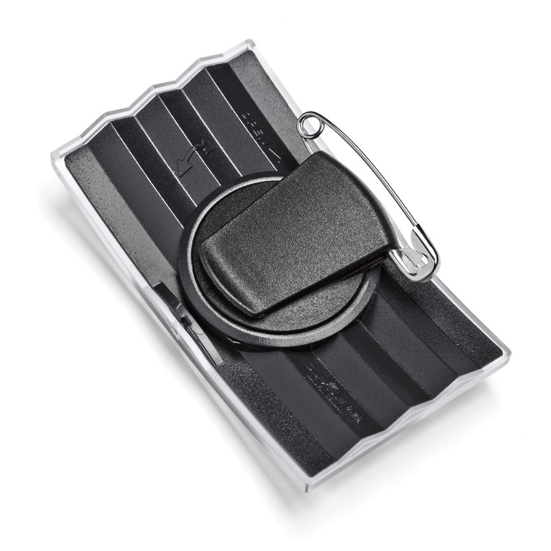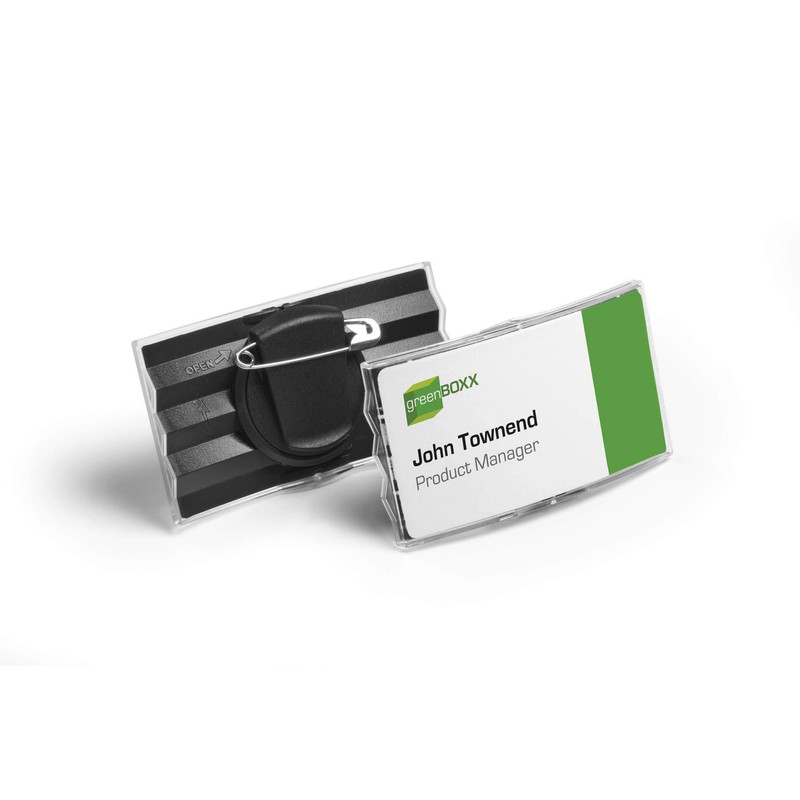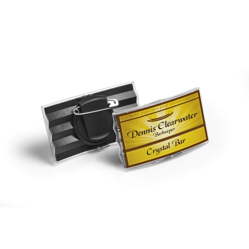 - 25 name badges for format 40 x 75 mm, with thumb punched for easy replacement of the insertion labels
