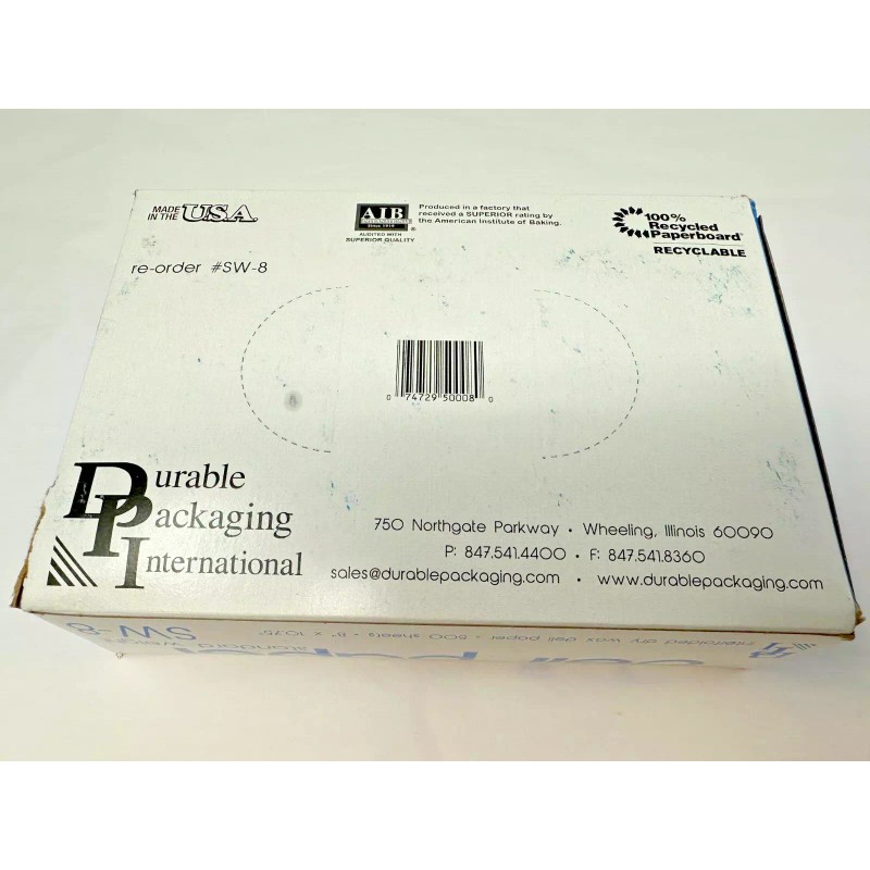 Durable Packaging 8"x10.75" Dry Waxed Deli Sandwich Paper Interfolded Pop-Up Sheets 500 Pack