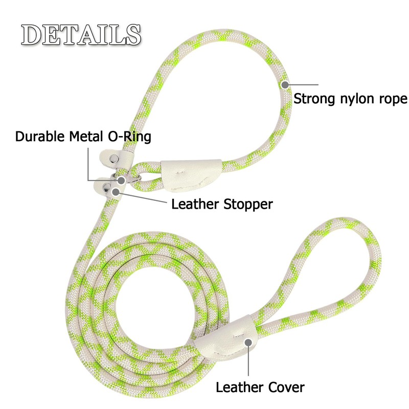 - đ¶ăPremium Durability & Safetyăđ¶Crafted with high-strength, wear-resistant polyester, this slip leash for dogs is lightweight,and built to withstand pulling. Its tangle-resistant design keeps walks stress-free, even around obstacles like trees and bushes.