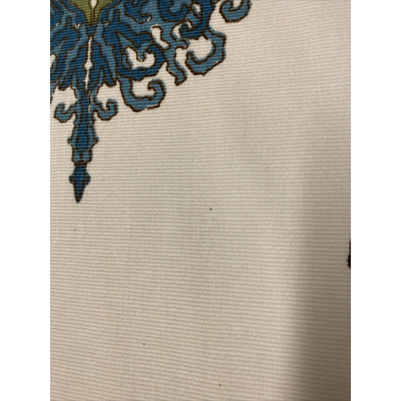 Background is off white and medallion is green and shades of teal with brown edges has occasional small specks see pics