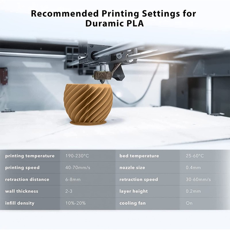 - 【100% Vacuum Package】Duramic 3D use resealable bag to vacuum the spool with desiccant, even after you open the bag, you can still reseal the filament to ensure there’s no moisture to lead to bubbling and clogging issue.