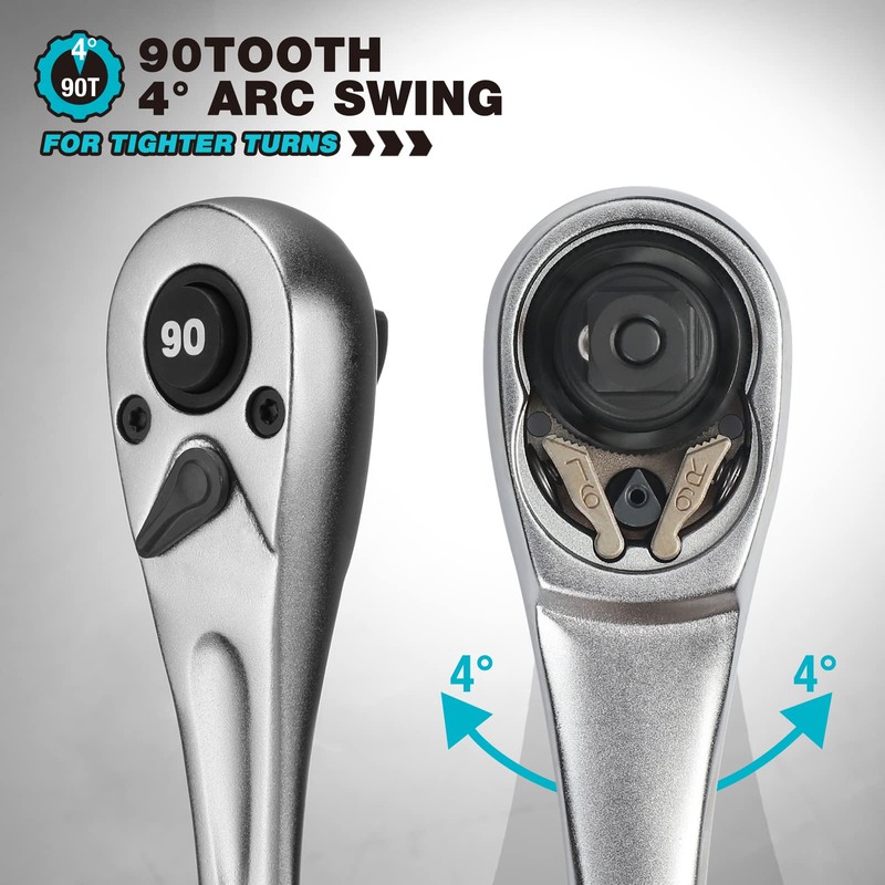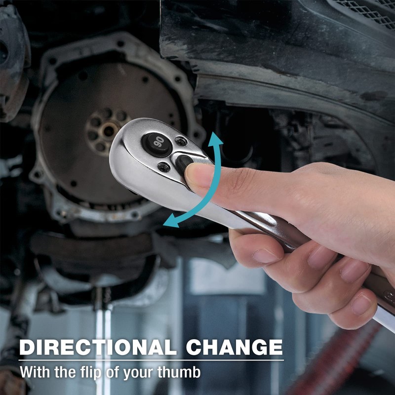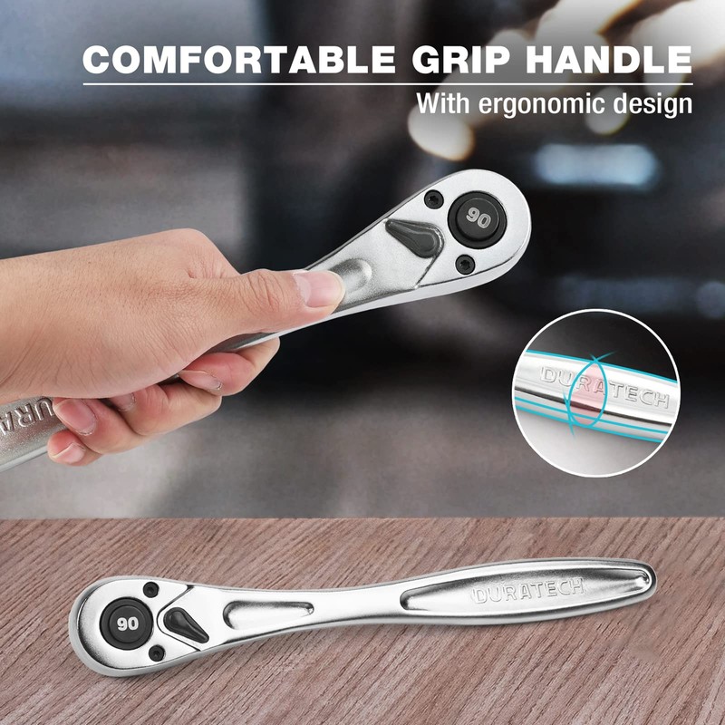 DURATECH 1/2 Ratchet Handle, 90-Tooth Socket Wrench, Reversible Ratchet Wrench, Quick-release