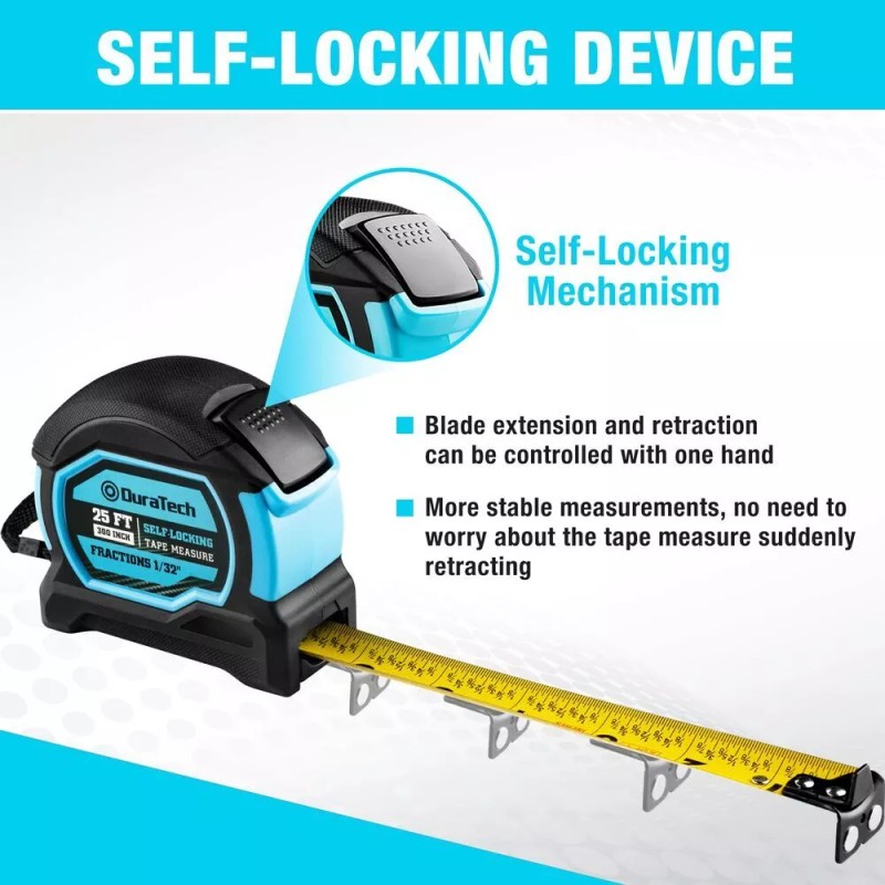 SELF-LOCKING MECHANISM: The intuitive self-locking feature offers a smooth and reliable lock for stable measurements. The tape measure retracts easily with a press, and locks securely with no risk of sudden retraction, ensuring safe and precise use every time.