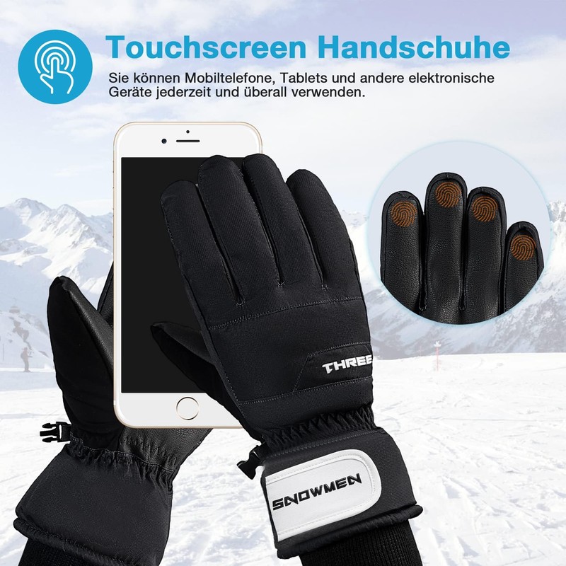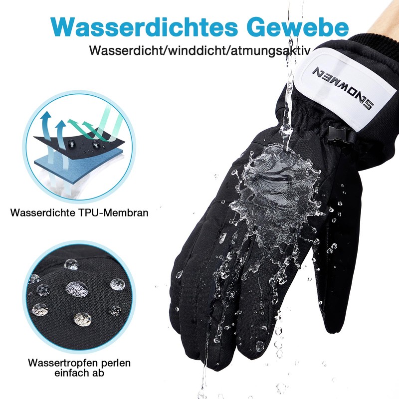 - WARM & DRY The gloves are designed with soft lining and lightweight breathable thermal insulation materials to improve warmth. They are thick enough to keep your hands warm when skiing, hiking and other snow sports in cold weather. Comfortable waterproof and windproof gloves, riding gloves, ski gloves, running gloves, etc. suitable for all people.