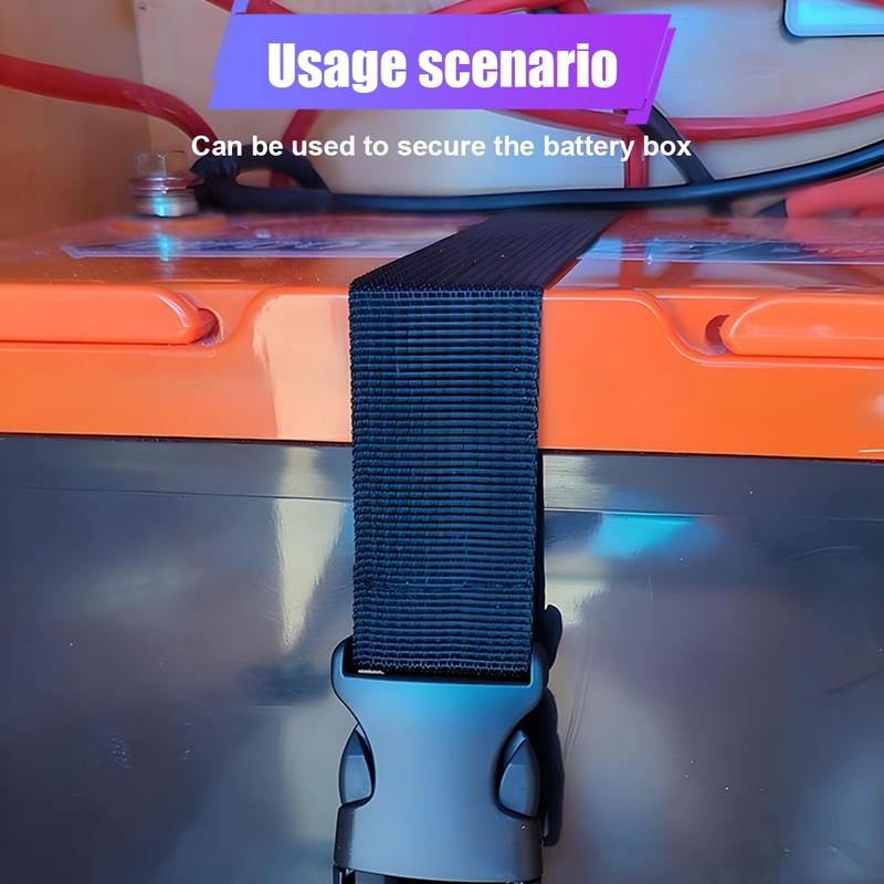 • 【High-Quality Material】:The battery tie-down is composed of high-strength polypropylene webbing and sturdy POM fasteners, has excellent tensile resistance, good weather resistance, and wear resistance, and is not easy to deform or break, ensuring the reliability of long-term and repeated use.