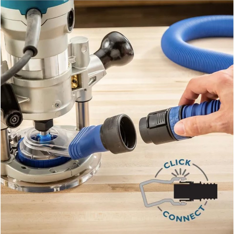 - Specially designed hose port allows attachment to Rockler's FlexiPort Power Tool Hose Kits with Click-Connect functionality