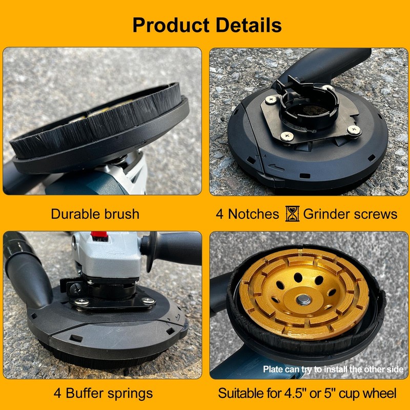 Dust Shroud for Angle Grinder 4.5" and 5" + 2 Pcs Diamond Cup Wheel 4.5" with 5/8"-11 Threads, Dust Extraction Surface Grinding Set with Spring Suspension System
