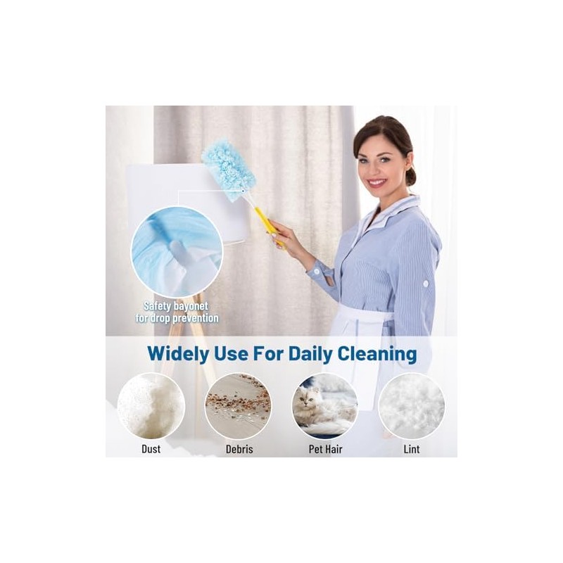 - Universal Compatibility: The 360-degree all-around cleaning duster refill is compatible with Swiffer duster handles, extendable handles, super-extended handles, and the upgraded self-standing handle. This is a universal refill pack where each core effortlessly attaches to the handle, ensuring stability and ease of use. It's super convenient; just insert the handle into the duster and effortlessly conquer dust.