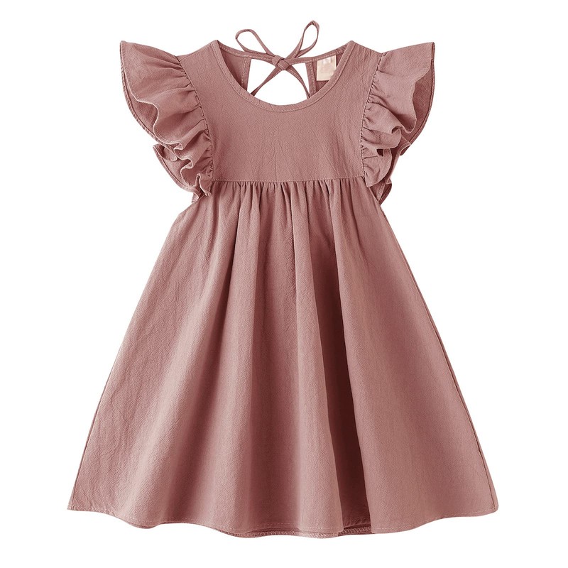 Feature: Girls cotton linen dress,The unique design of the flying ruffled sleeves is chic and cute. The loosely hem tailored design, exquisite workmanship, pretty colors, your little princess will love it.