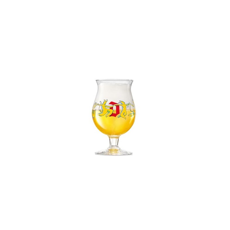 Elevate your beer-drinking experience with the Duvel Devils Chalice, a masterfully crafted goblet designed specifically for savoring premium Belgian ales. This elegant vessel features playful yellow devils dancing around the glass, adding a whimsical touch to its sophisticated design. The distinctive tulip shape captures and enhances the complex aromas of your favorite brews while maintaining the perfect head. The sturdy stem keeps your hands from warming the beer, ensuring each sip remains at the ideal temperature. This chalice isn't just a glass - it's an essential tool for beer enthusiasts who appreciate the ritual of proper beer service. Perfect for special occasions or adding a touch of authenticity to your home bar collection, this signature chalice transforms an ordinary beer moment into an extraordinary tasting experience. The crystal-clear glass showcases your beer's color and effervescence beautifully, making it as much a visual treat as a practical drinking vessel.