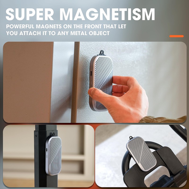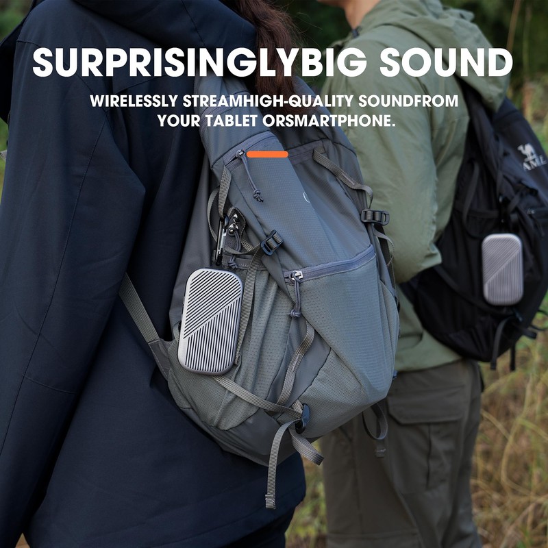 - [Carabiner & Magnetic Function] The DUVOSS U3 Bluetooth Speaker comes with a hiking carabiner, you can hang it on your clothes, backpack or belt loop, or put it in your backpack or pocket. The bluetooth speaker has a magnetic attraction function to attach to metal surfaces.
