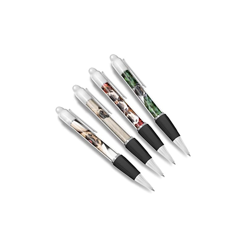DV DESIGN Set of 4 Pug White Ballpoint Pens - Animal Puppy Pets Pugs Autumn Dogs Themed Boys Girls Men Women Stationery Pen #79635