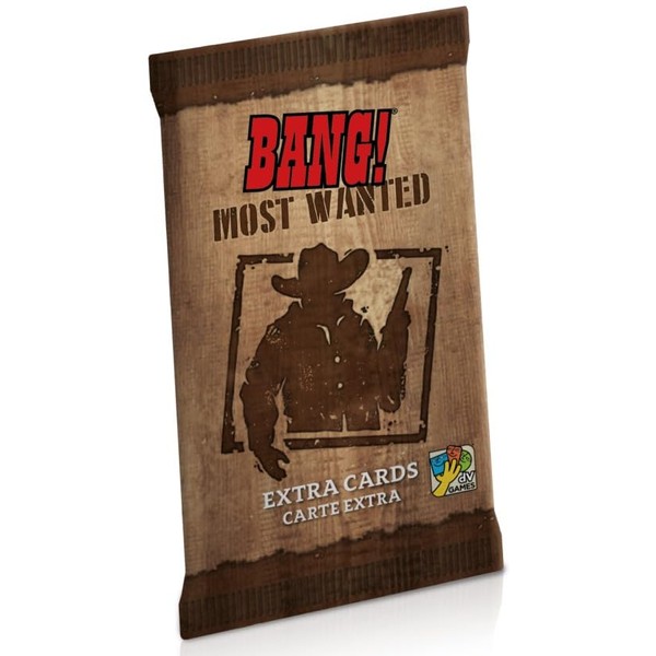 BANG Most Wanted the set that includes the rarest and most requested cards of the mythical game Spaghetti-Western BANG . In this pack you will find 9 special cards, also present inside the BANG Dynamite Box: Claus the Saint , Uncle Will, Johnny Kisch, Handcuffs, New Identit , Annie Versary, Emiliano and two blank cards, to personalize a Character and an Event. Shuffle cards with your base game deck and, if desired, with your favorite expansions. Complete the collection and enter the Legend of BANG All the rare cards of BANG , finally available in a single pack. This Most Wanted.