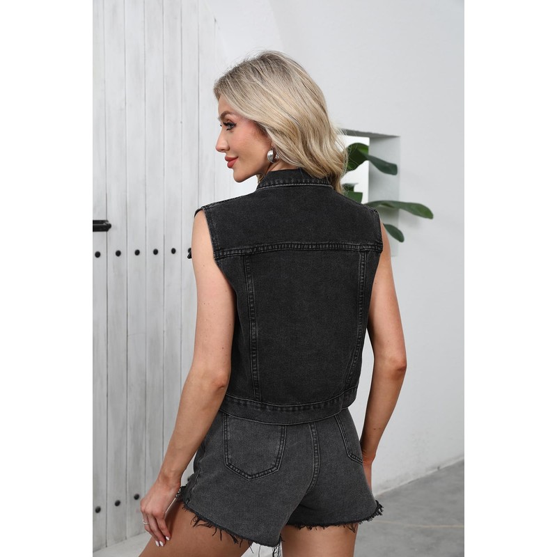 - Stylish and Versatile Design: This sleeveless denim jacket vest features a chic cropped cut, perfect for layering over your favorite tops or dresses; The button-up closure adds a classic touch, making it a versatile piece for any casual or semi-casual outfit