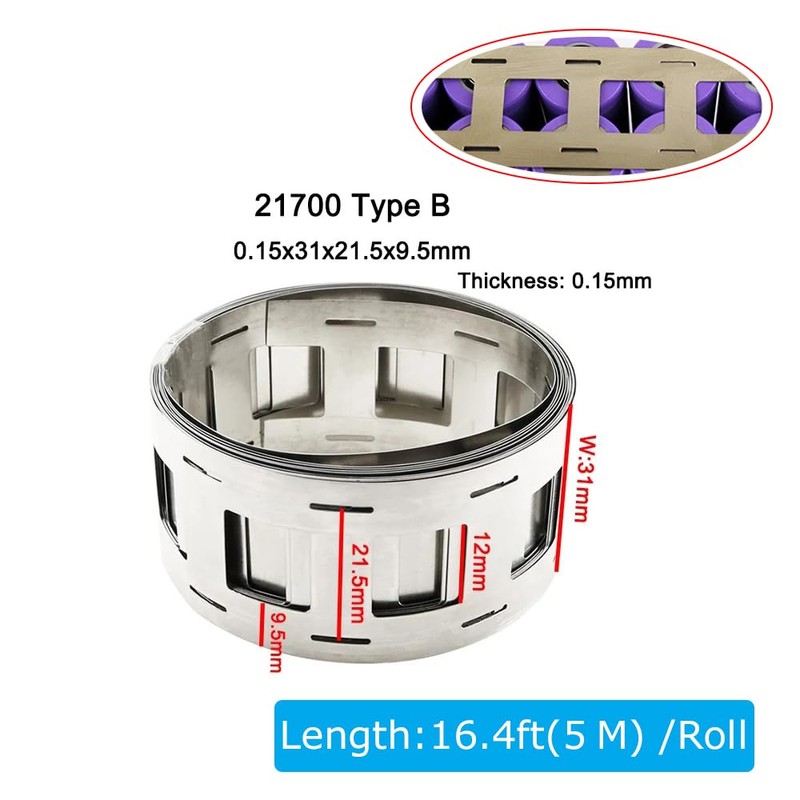 - Package:5M/16.4ft(roll) 2P 21700 Battery Packs Nickel Strip