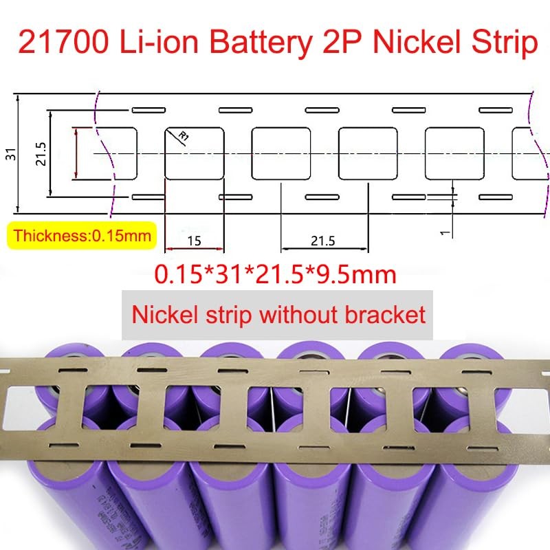 DVFOYTI 21700 2P Nickel Plated Strip 16.4ft/Roll 0.15x31mm,Spacing 21.5mm, used for Li 21700 Battery Spot Welding,Battery Packs, DIY Power Projects.