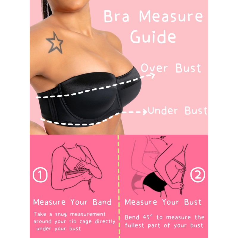 - 【Perfect fit Following Size Chart】Passing thousands women wear test, the fit of each cup size is up to 98%. Elastic band & precise Cup size can fit most of ladies perfectly. A couple high support clear straps can resolve exception.
