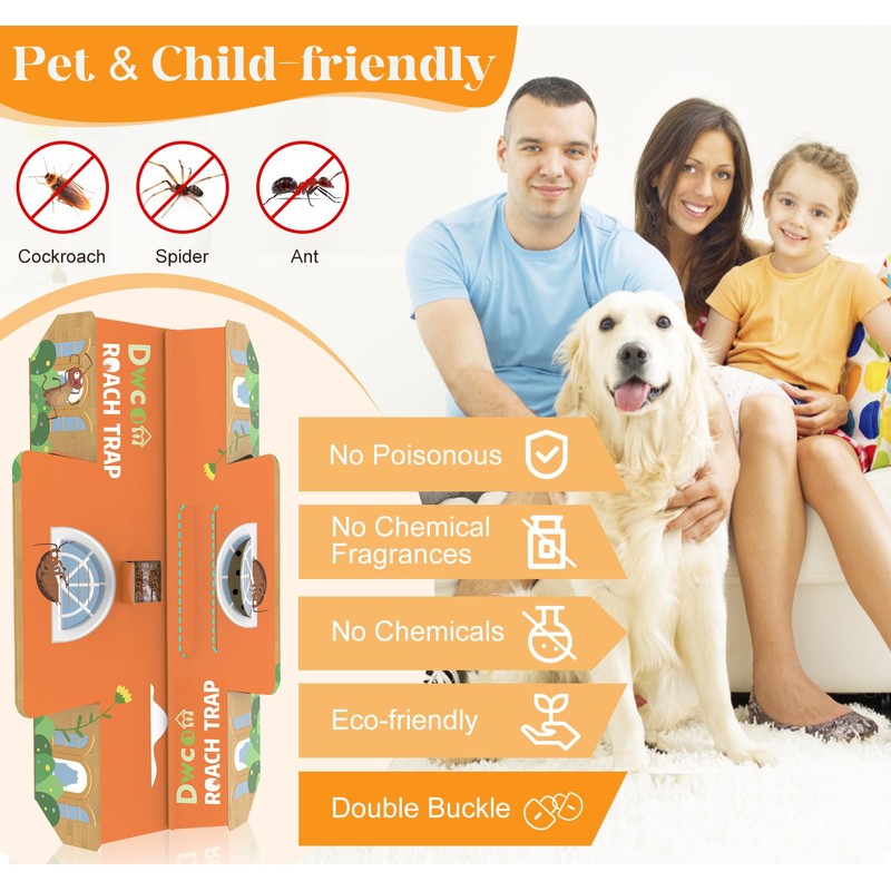 - [Family Safe Cockroach Trap]: Roach killer indoor infestation can be placed anywhere in your home to protect your family from cockroaches and other vermin. Roach motel are designed with cardboard and glue ,so cockroach killer indoor home are friendly to human and pet bodies, which can be used with peace of mind.