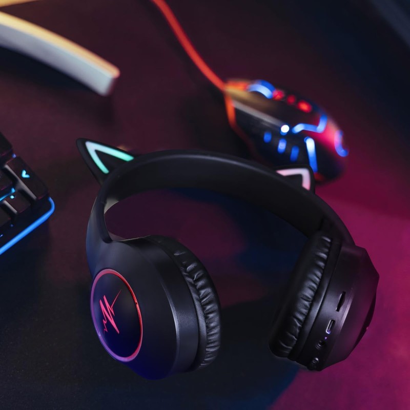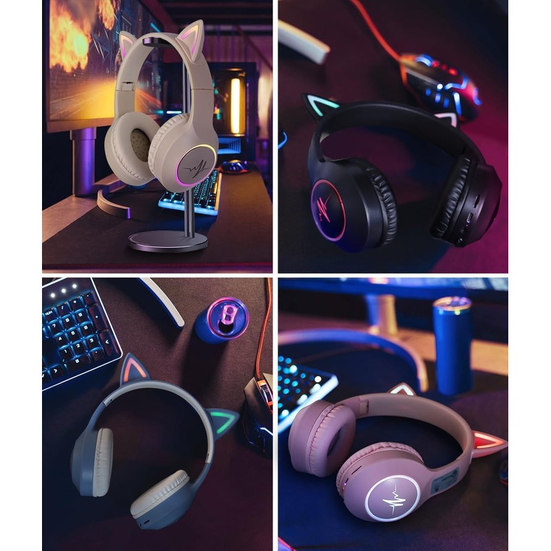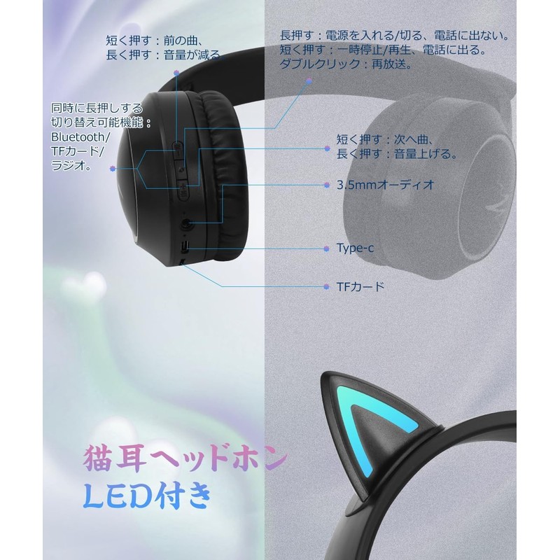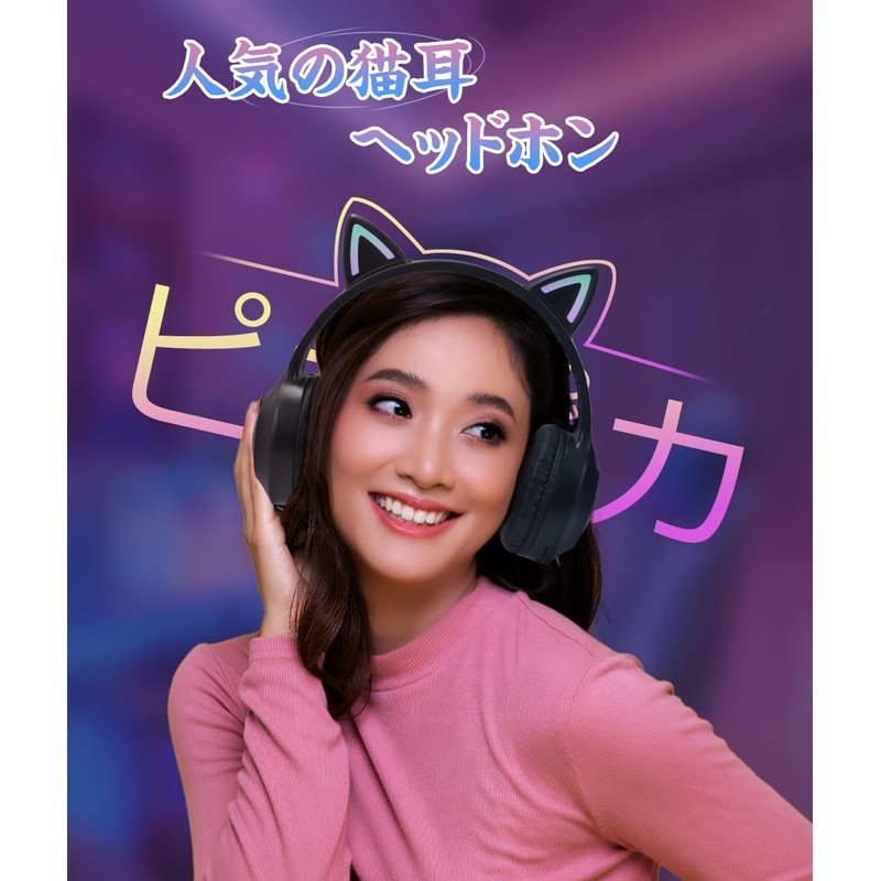 DWCQRTM Bluetooth5.3 猫耳ヘッドホン ワイヤレスヘッドフォン ピカピカ 猫耳ヘッドセット オーバーイヤーヘッドホン 遮音 密閉型 可愛い 折りたたみ 携帯便利 サイズ調節可能 有線無線兼用 大容量バッテリー 子供用 大人用