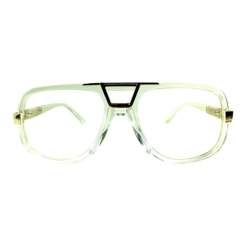 Dweebzilla Gazelle Deejay Square Retro Aviator Sunglasses (Transparent & Gold Frame, Clear)