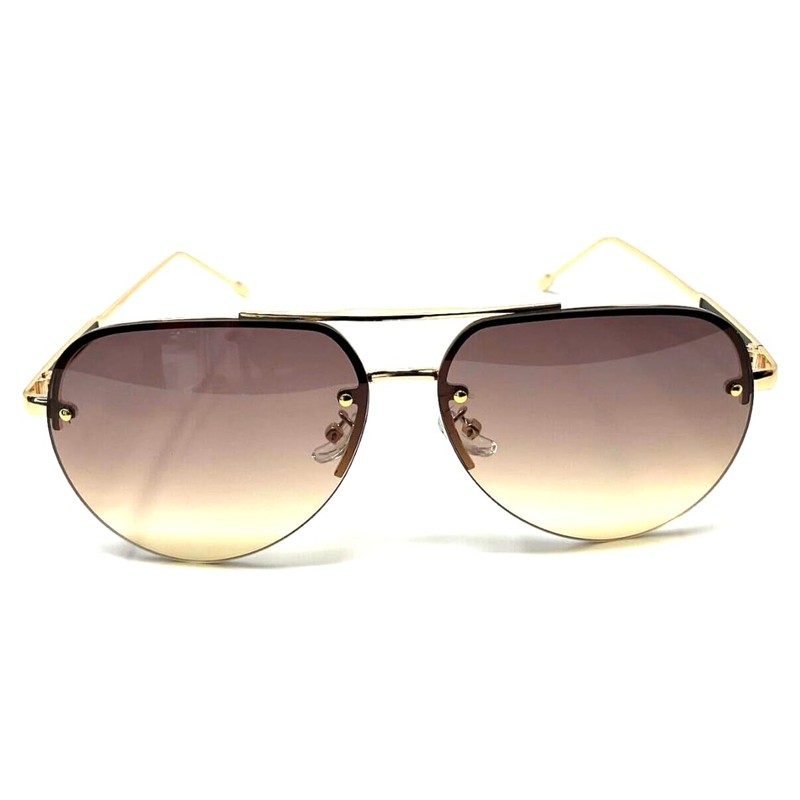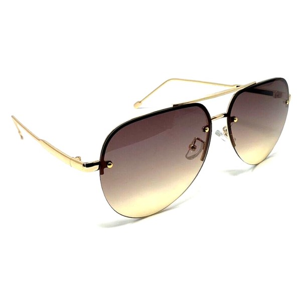 Dweebzilla Oversized Rimless Classic Sport Aviator Sunglasses With Floating Lenses (Gold Frame - Brown Gradient Lenses)