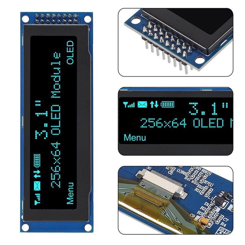 - ❃❃3.12 inch OLED Display 3.12" 256X64 25664 SSD1322 Driver Graphic LCD Module Parallel/SPI Soldering Pin for Arduino