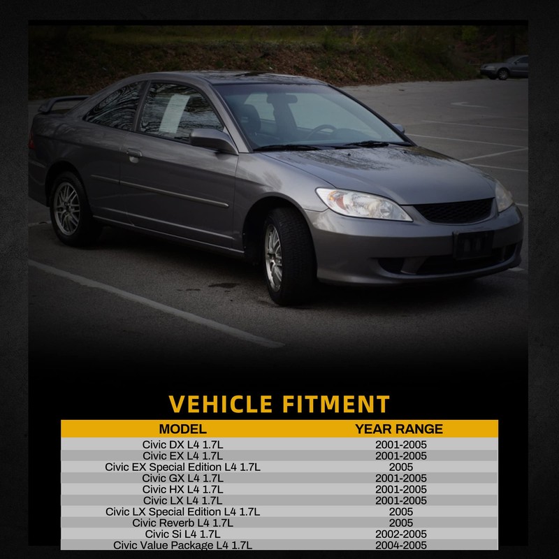- DIRECT OEM FIT - Radiator Compatible with 2001 2002 2003 2004 2005 Honda Civic, Compatible with 2001-2005 Acura EL L4 1.7L (direct bolt-on oem replacement fits all 4 speed automatic models & specific compatible with 2005 civic with 5 speed manual)