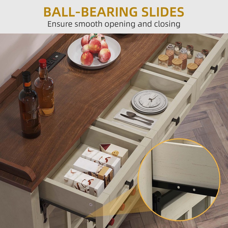 - Versatile Storage Options: The coffee bar cabinet cleverly integrates both concealed and open storage areas, maximizing space efficiency and accessibility, which provides ample countertop space, three convenient & dust-protected drawers, 12-bottle wine rack and four spacious & adjustable shelves, you can effortlessly organize an array of items