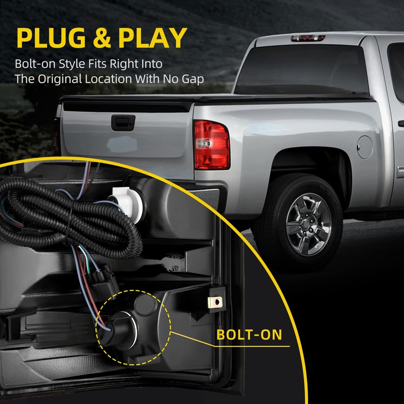 DWVO Rear Tail light Compatible with 2007-2013 Chevy Silverado 1500/2500HD/3500HD(Not Fits 2007 Classic),12-14 GMC Sierra 2500HD/07-14 3500HD Tail Lamp With Bulb Inside-Passenger and Driver Side