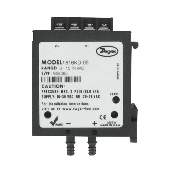 Dwyer Differential Pressure Transmitter, 616KD-04, DIN Mount, 0-10" w.c.