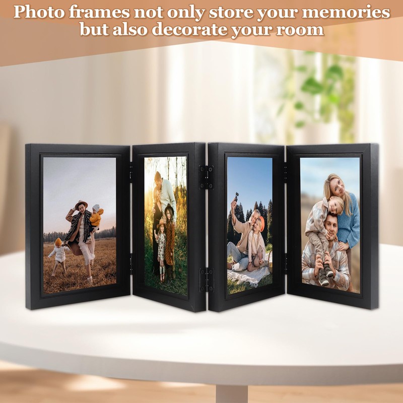 DXiongW Picture Frame for 4 Pictures 10 x 15 cm Foldable Photo Frame Collage MDF Black Picture Frame Vertical Portrait Frame Family Office Table Decorating Frame Gift for Wedding Friend Birthday