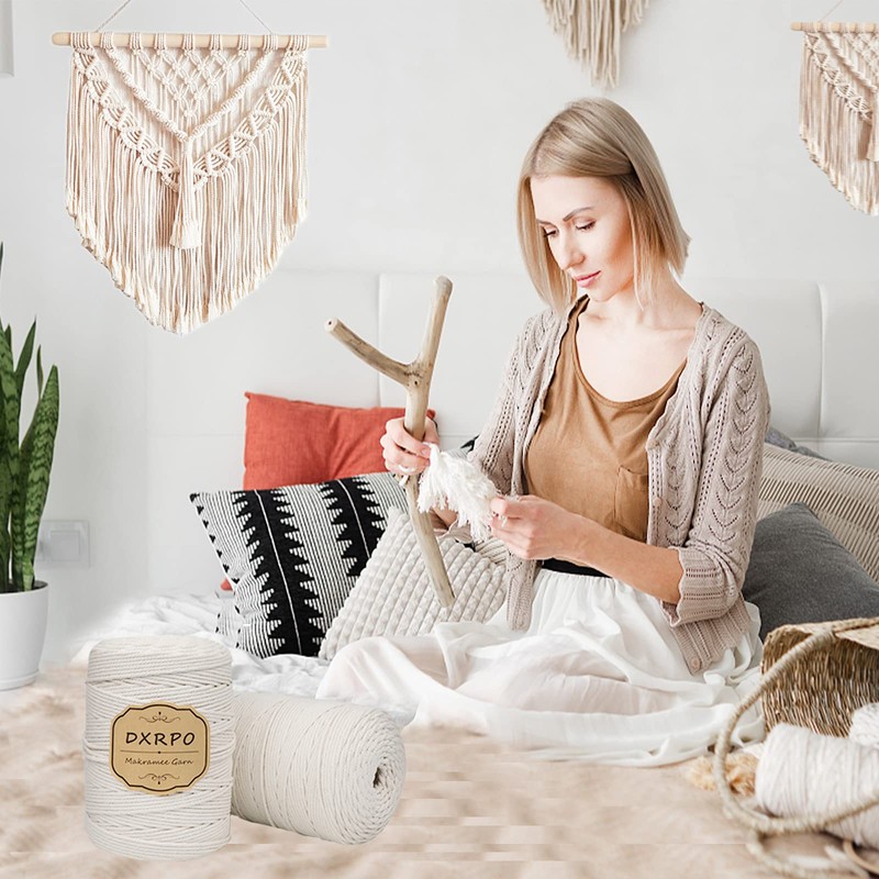 - Fun DIY: Long enough macrame yarn can be cut to the length you need. With this cotton yarn, you can attach decorations to your fabrics and easily add ribbons, beads and other decorative materials. The macrame cord feels very soft and is not easy to break. You can search for "macramé yarn" on many websites, many people will share their knitting process and results, this is a good choice.
