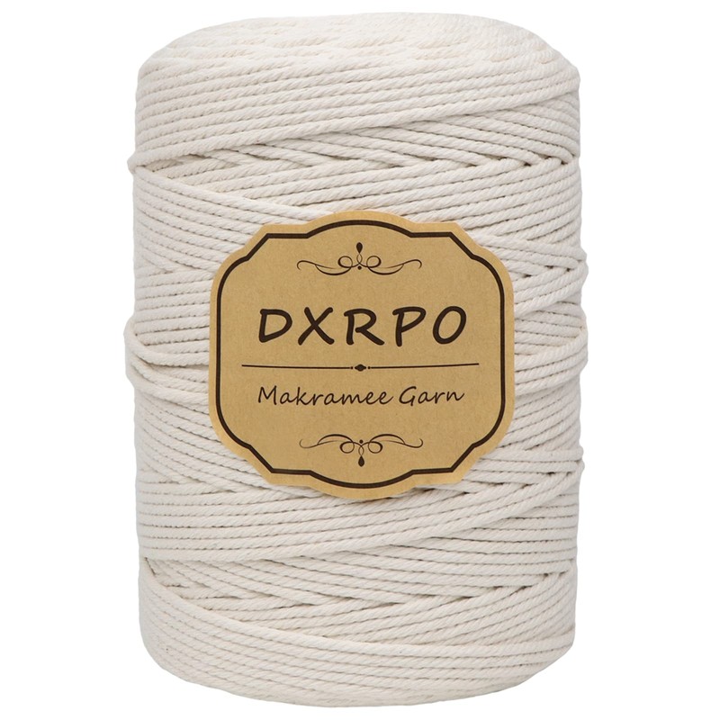 DXRPO Macrame Yarn 3 mm x 300 m, Natural Macrame, Cotton Yarn Macrame Cord, Cotton Cord Used Wall Hanging, Macrame Hanging Basket, DIY Craft Plant Hanger, Boho Decoration, Beige