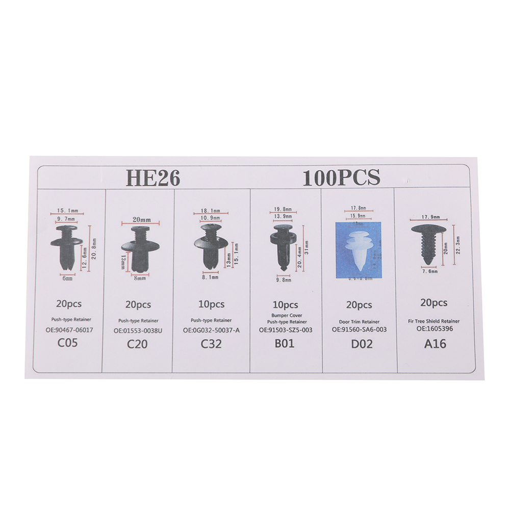 Total 100 Pcs Clips Retainer (6 different sizes )
