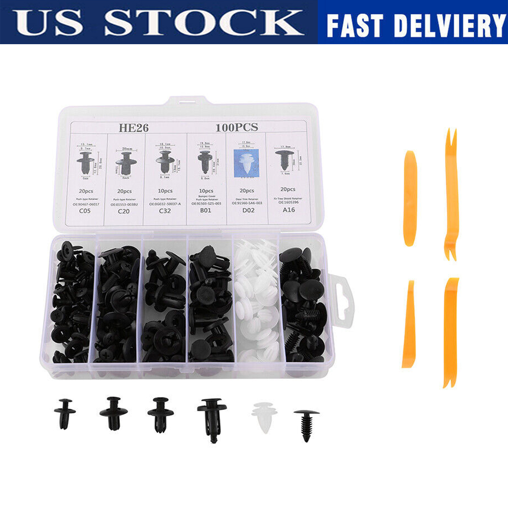 Dyauet 100 Mixed Hole Plastic Rivets Fastener Clips Push Pin For Car Auto Fender Bumper