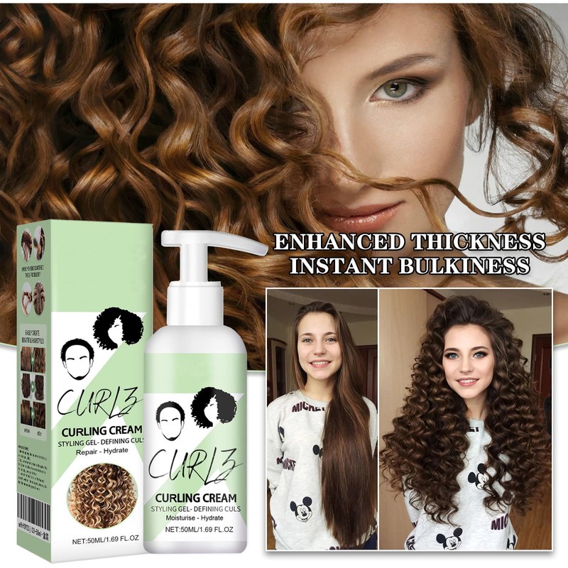 Dyceittdia 50ml Curl Hair Defining Cream, Creme zur Definition von Locken, Volumenspendende Creme für Lockiges Haar, Feuchtigkeitsspendend Flauschig Langanhaltender Halt, hair1