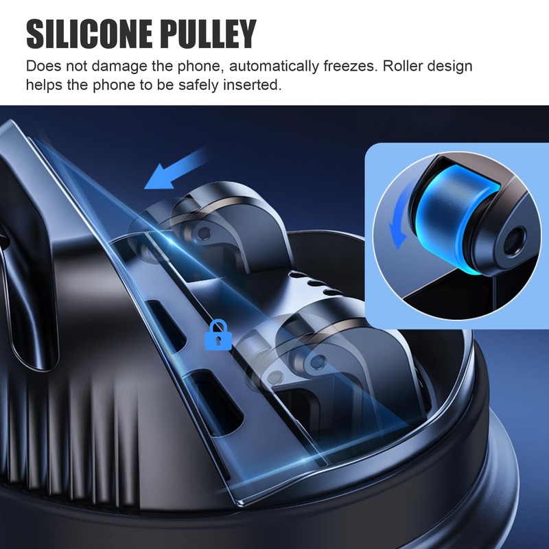 - Automatic Clamping: This mobile phone holder uses silicone rollers, and the mobile phone can be freely placed horizontally and vertically, automatically clamped, without damaging the mobile phone, firmly grasped, and easily taken and placed in 1 second.