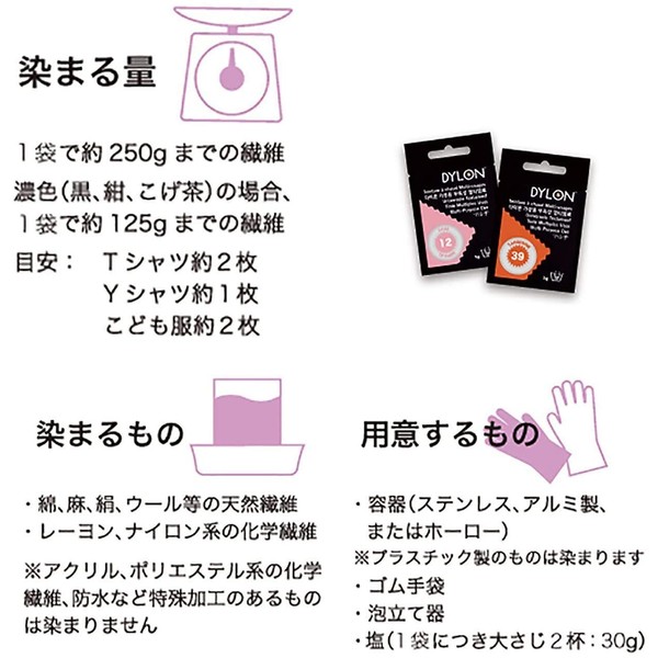 - Hot water dyed, but no heating required. Place this product and salt in warm water to dye it. Can be used for 2 t-shirts (8.8 oz (250 g). When dyeing black or dark colors, please double the product