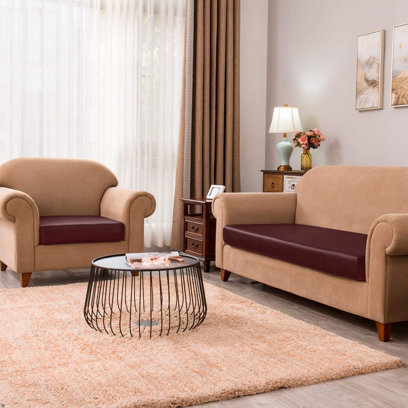 DyFun Couch Cushion Cover PU Leather Sofa Cushion Slipcover Stretch Waterproof Chair Seat Slipcover Furniture Protector (Loveseat Cushion, Wine)