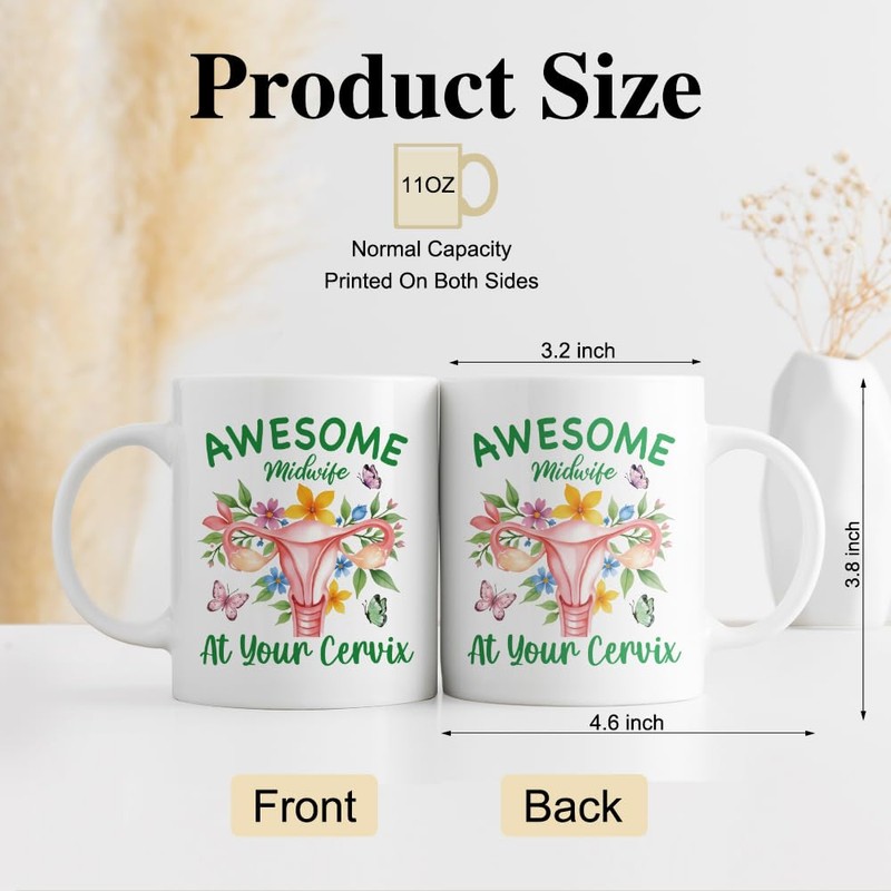 DYJYBMY Awesome Midwife At Your Cervix Mug, Midwife Tea Cup, Birthday Appreciation Gifts for Midwife Nurse Midwife OBGYN, Postpartum Childbirth Gifts for Her Sister Women BBF Girlfriend Family