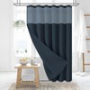 - 72 inch Modern Shower Curtain Liner Set with 12 Plastic Hooks Each bathroom shower curtain liner set includes 1 navy blue waffle shower curtain with mesh top window, 1 same color fabric snap-on linerW71xH53 inches, 12 plastic hooks, 12 rust resistant grommets that fit most standard shower curtain hooks or rings. Light filtering and not see through, which can be enough to protect your privacy.
